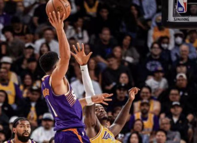 次节湖人的进攻反弹,里夫斯连续造杀伤,这一节通过罚篮拿到了5分,拉拉维亚、八村垒连续命中三分,湖人打出一波18-2的高潮,把分差追到只差2分。随后海斯也有暴扣布克的精彩镜头。关键时刻,伊戈达罗和狄龙的三分重新帮助太阳稳住阵脚,布克保持冲击力,单节5投3中,6罚4中贡献了10分,半场结束太阳57-44继续保持领先。